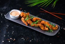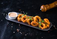 Креветки темпура,кольца кальмараFish&Chips соусы Айоли ,Юдзу майо,Ореховый Тан-Тан