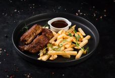 420 г • Запеченые рёбра с картофелем фри и соусом умами