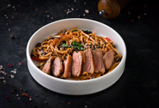 С говядиной в соусе умами и яичной лапшой