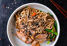 С цыплёнком в соусе устричный-тамаринд и пшеничной лапшой