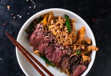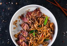 С уткой в соусе апельсиновый хойсин и яичной лапшой